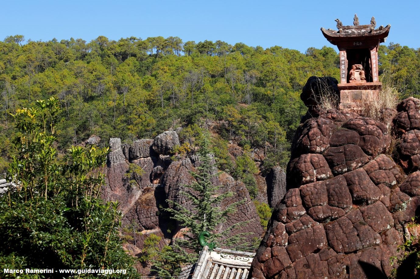 En ce qui concerne le paysage, j’ai trouvé les rizières au sud de Yuanyang très belles avec des terrasses spectaculaires, qui méritent d’être visitées pendant des périodes de l’année différentes pour observer le changement de couleur du riz. La forêt de pierre de Shilin est une autre belle destination. J’ai préféré de sortir des zones les plus touristiques. Très belles sont les couleurs d’automne des arbres avec le fond des pinacles de la forêt de pierre. Les montagnes au nord de Lijiang sont très belles aussi. Lorsque nous sommes allés à visiter le Mont de la Neige du Dragon de Jade (Yulongxue Shan), nous n’avions eu le seul jour nuageux du voyage. C’était dommage de ne pas avoir visité les gorges du Saut du Tigre, qui n’était pas inclus dans l’itinéraire.
